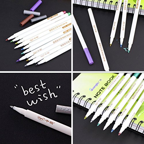 - 1mm Tip Vivid Colored Pens: Unlike your colored markers and drawing pens, our metallic are round tip which won't smear or bleed through paper. Go bold with a variety of 10 colors that POP on any background