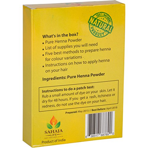 - Feature : HAVE REALISTIC EXPECTATIONS - Henna is a Natural Hair Dye. Final hair color may vary. / VERY SAFE - Enjoy rich, shiny, luscious, healthy, thicker, brighter and stronger hair. / DOES NOT BLEED - Once applied correctly, color will not bleed with shower, swim or sweat. / PLEASANT SMELL - Distinctively aromatic with a fresh herbal, earthly, fresh cut hay like smell. / RECIPES INCLUDED - Save time and use one of the five awesome henna preparation techniques.