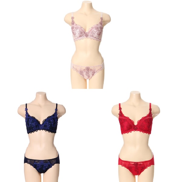 정교한 케미컬 모티브를 매칭하여 와코루만의 고급스러움 강조한 여성브라,헴팬티 세트입니다.