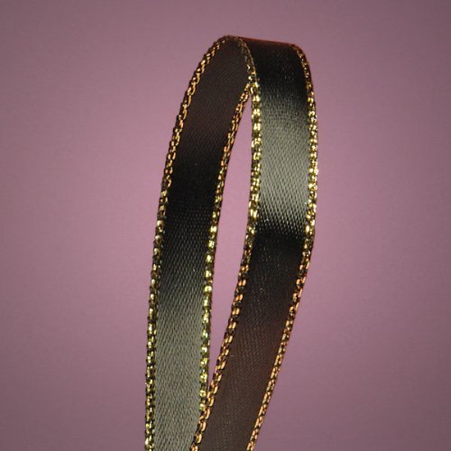 Black Satin Ribbon with Gold Edges, 3/8" X 50Yd
