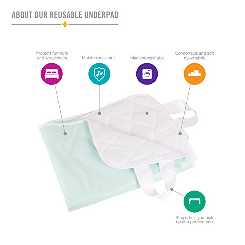 DMI Incontinence Pad, Reusable Bed Pad with Straps, Quilted Bed Pad For Incontinence, 4 Ply, 28 x 36 Inches, Green