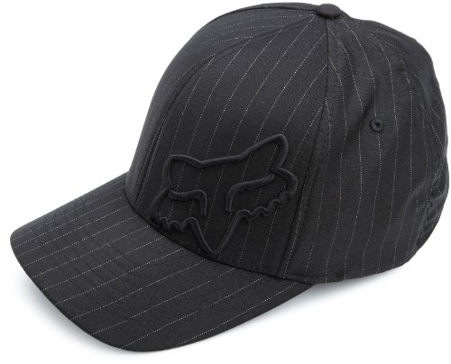 Product Description98 percent cotton 2 percent elastane. Black pinstripe- 97 percent polyester 3 percent elastane. Front 3D Fox head 45 logo embroidery. Back Fox head logo embroidery. Medium profile, natural curved bill.0