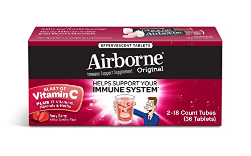 -. Binding : Kitchen -. Brand : Airborne -. EAN : 0811929826516 -. Feature : Airborne Immune Support Supplement With Herbs, Vitamins, and minerals Very Berry Flavor 36 Tablets Per Order / Helps support your immune system. / Number 1 best seller in the USA -. IsAdultProduct : 0 -. Label : Airborne -. LegalDisclaimer : The statements in this page have not been evaluated by the Food and Drug Administration. This product is not intended to diagnose, treat, cure or prevent any disease. -. Manufacturer : Airborne -. MPN : 476918 -. NumberOfItems : 1 -. PackageQuantity : 1 -. PartNumber : 476918 -. ProductGroup : Health and Beauty -. ProductTypeName : HEALTH_PERSONAL_CARE -. Publisher : Airborne -. Studio : Airborne -. Title : Airborne Effervescent Health Formula Very Berry - 2/18 Tablet Tubes -. UPC : 647865100133