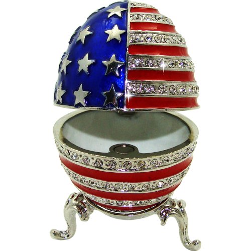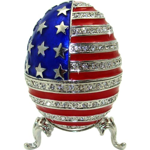 -. Title : Objet D'Art Release #306 "The American Eggsperiance" USA Egg on Stand Handmade Jeweled Metal & Enamel Trinket Box