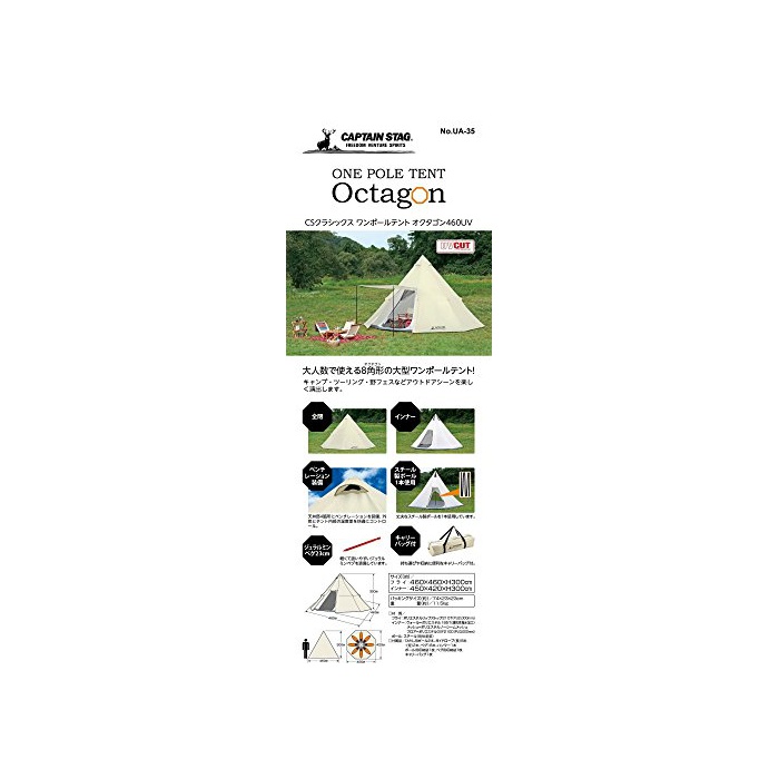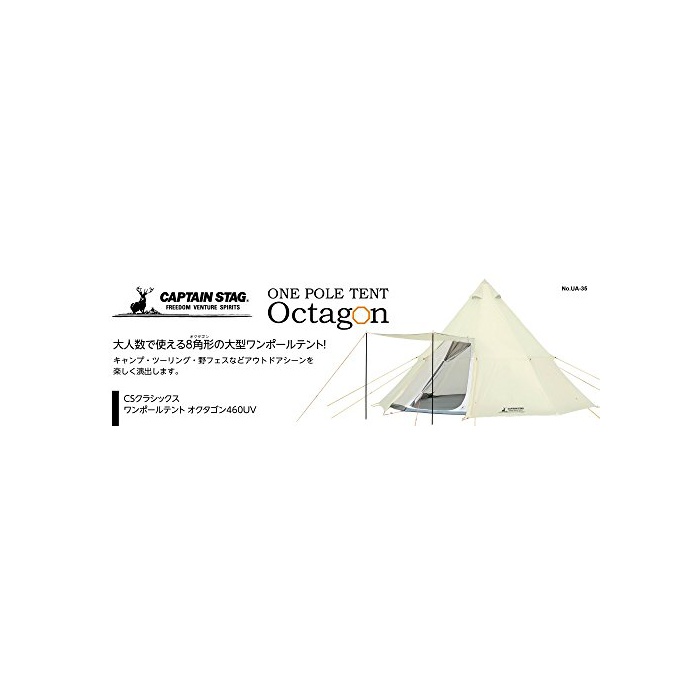 원본상품명: キャプテンスタッグ テント ワンポルテント オクタゴン ティピ型 7~8人用 【サイズ460×460×H300cm】 UVPU加工 キャリバッグ付き CSクラシックス UA-35