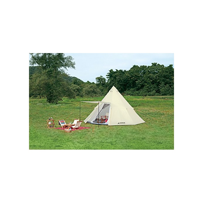 ●재질:플라이 씨트/폴리에스텔 립 스톱210T(내수압2000mm)고, 이너 텐트/wall=폴리에스텔 노 seam 메쉬,플로어=폴리에스텔OXF150D(내수압3000mm)고, 폴/스틸(분체도장)●제품 사이즈(약):플라이/460×460×H300cm,이너/450×420×300cm●팩킹 사이즈(약):74×23×23cm●중량(약):11.5kg●부속품:히사시용 폴2개,해머1개,페그(말뚝)18개,가이드 로프(길이)8개(짧은 것)2개,폴용 수납대1매,페그(말뚝)용 수납대1매,캐리 백1매