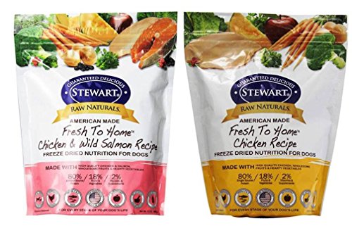 Stewart Raw Naturals Freeze Dried Nutrition For Dogs 2 Flavor Variety Bundle: (1) Stewart Chicken & Wild Salmon Recipe, and (1) Stewart Chicken Recipe, 12 Oz. Ea.