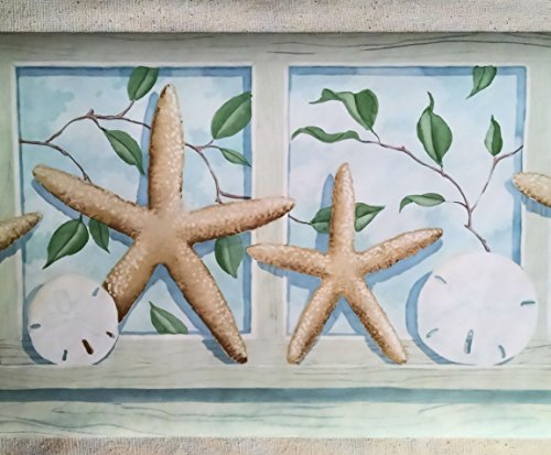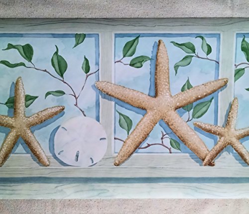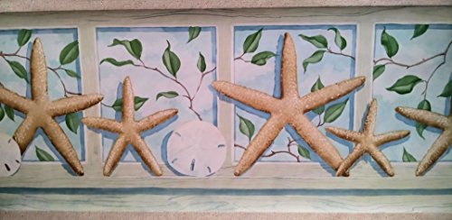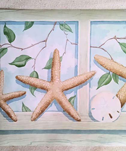 -. Feature : 15 Foot Long Spools - Prepasted Wallpaper Border / Pattern: PE604B / 11 Inches Wide / Starfish, Shells, Seashells Wallpaper Border / Seashore Wallpaper Border