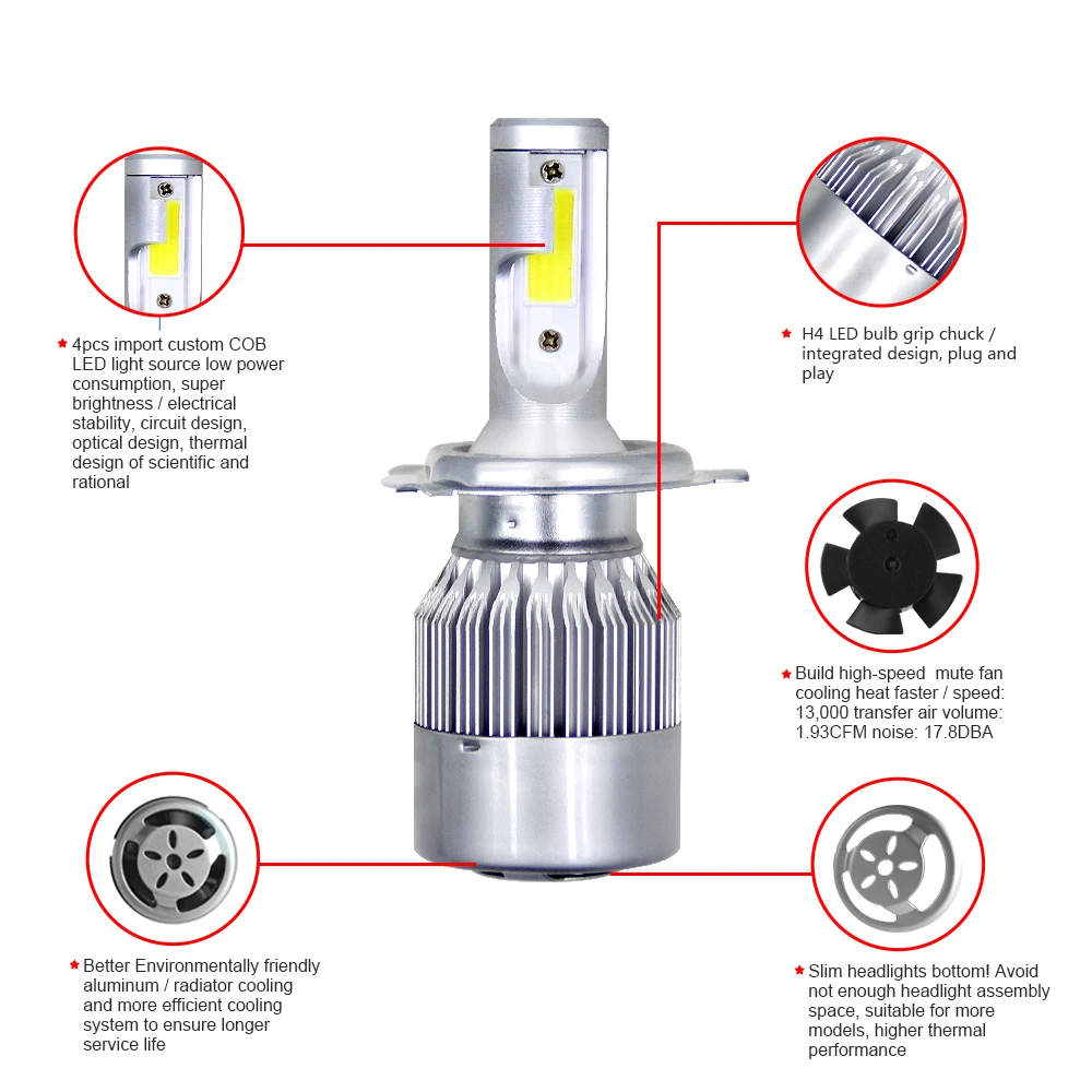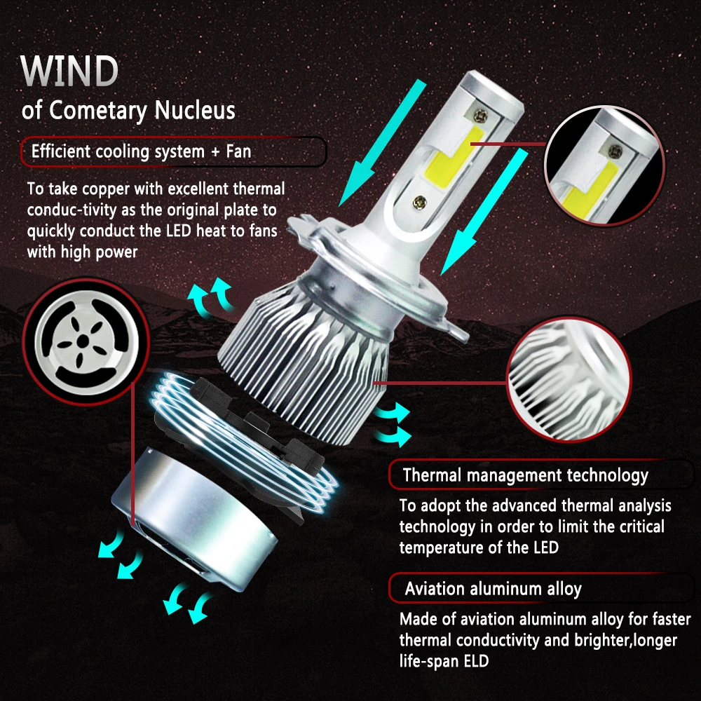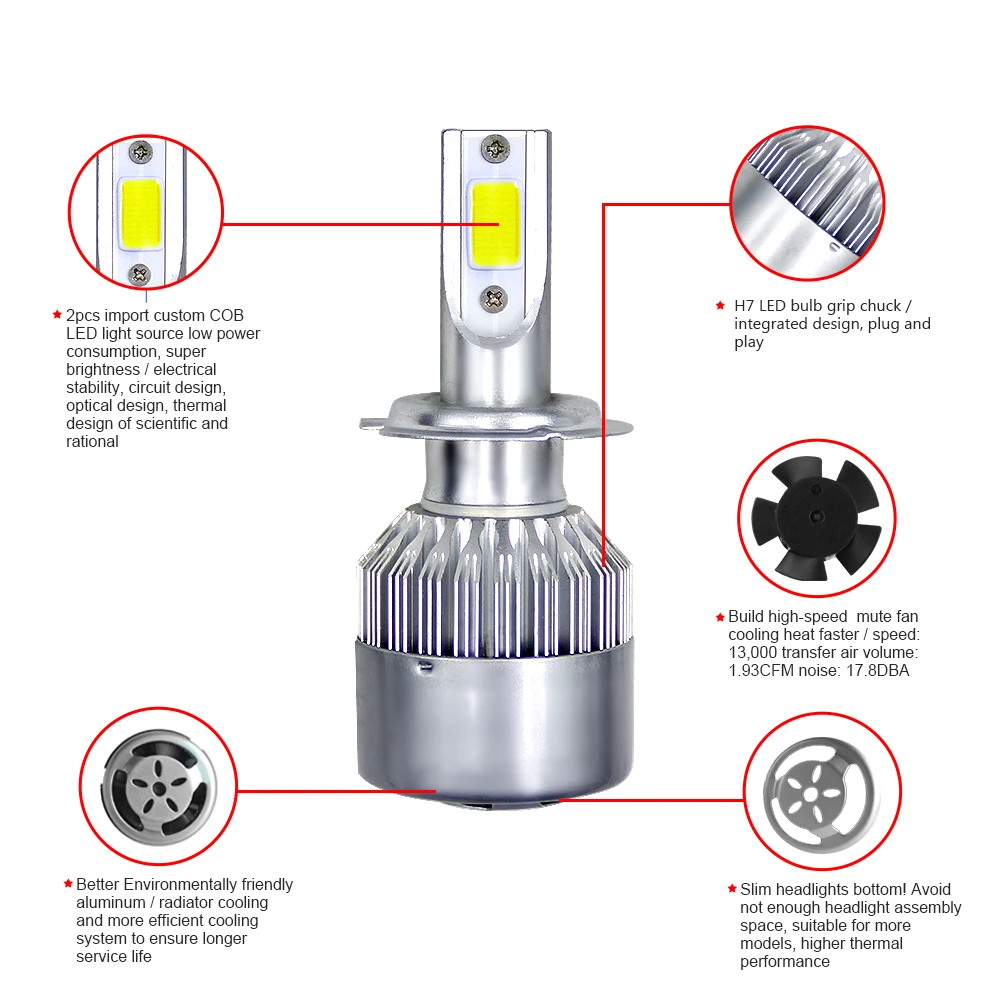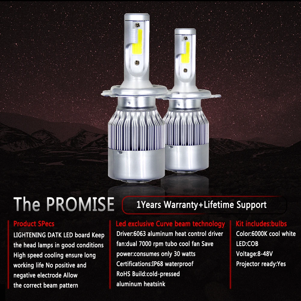 Application:LED Headlights Lamp Bulbs High or Low Beam