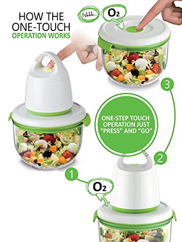 One touch operation, with power suction that removes air from the canister. Keep food fresher longer