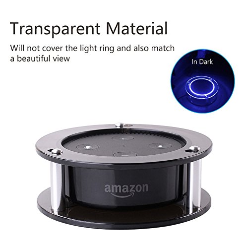 Studio : kitchenhoney Publisher : kitchenhoney Product Description Please Note: There is a protective layer on the acrylic, to prevent the product from scratching and Echo dot is not included. Product description Color:Semi-transparent Black Amazon Echo Dot Stand Make Echo Dot more conspicuous and more clear to hear your voice, which is Wall Mount can help you. Stable Structure With the principle of triangle stability, and the anti-slip rubber feet, Wall Mount can make Echo Dot stay steadily on the wall or on the desktop. Unique Design Open all the way around and on top, does not interfere with the sounds quality and voice recognition. So that will be more clear to hear your voice if you get it on the wall. And the audio output and power ports work well. Transparent Material Made of transparent acrylic ring. It can make Echo Dot more dazzling when the light ring through it. Specification: Color: Transparent and Semi-transparent black Plastic Part Material: Acrylic Stand: Aluminum Package including: 1* PCS Stand for echo dot 3*screws 3*wall anchors 3*rubber feet 0