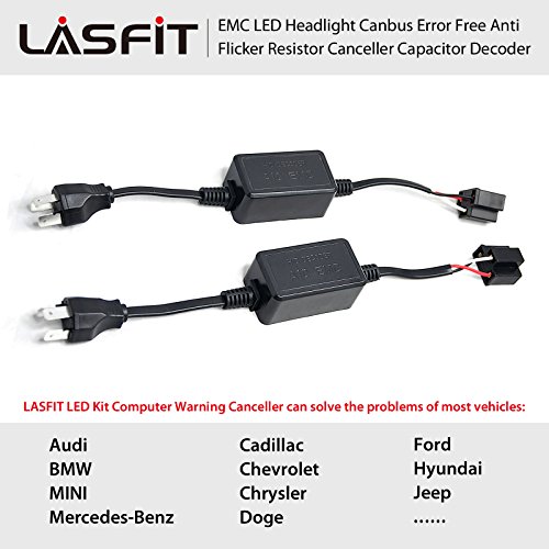 Shift the auto lighting - LASFIT. LASFIT LED kit warning canceller. LASFIT LED kit computer warning canceller can solve most problems of your auto LED and hid headlight kits, including headlight flickering, non-function, radio interferes, a dashboard “error” code. The LED headlight conversion kit is triggering a bulb out warning signal in your car’s computer unit, LASFIT LED warning canceller is designed to balance out the current draw of the LED headlight conversion kit and would offset the warning signals on the dash board. And it will eliminate LED headlight flickering that is caused by the vehicle’s computer not recognizing the low wattage LED bulb. Fix most vehicles. LASFIT LED kit warning canceller can solve problems of most vehicles, including Mercedes Benz, bow, Audi, Chrysler, mini, Cadillac, Chevrolet, doge, Hyundai, jeep, ford, etc. Easy and fast installation: LASFIT capacitors work with “plug-n-play”, simple to install, save your time and solve the auto problem soon. Strong circuit: LASFIT LED decoders have competitive parts, can solve the headlight problems of most model cars. Other common decoders only has one capacitor and just can solve a few car model headlight problem. Upgraded from hid decoders, LASFIT can solve both hid and LED headlight problems. We do more than sunshine, we do more than you wish! Package content: 2pcs LASFIT LED kit warning cancellers.