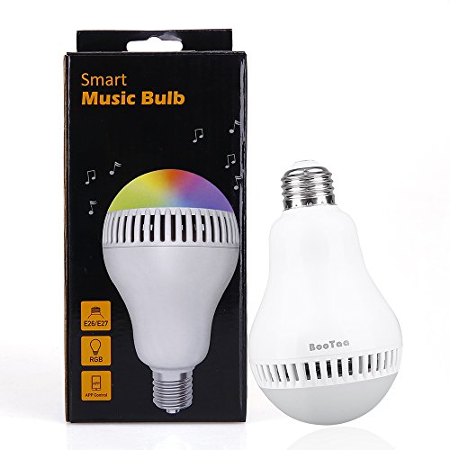 BLUETOOTH LIGHT BULB SPEAKER, E26 BASE, BOOTAA SMARTPHONE CONTROLLED SUNRISE WAKE UP LIGHTS- DIMMABLE MULTICOLORED COLOR CHANGING PARTY LIGHTS BULB -8W (WHITE 5W+RGB 3W) (50WATTS EQUIVALENT)