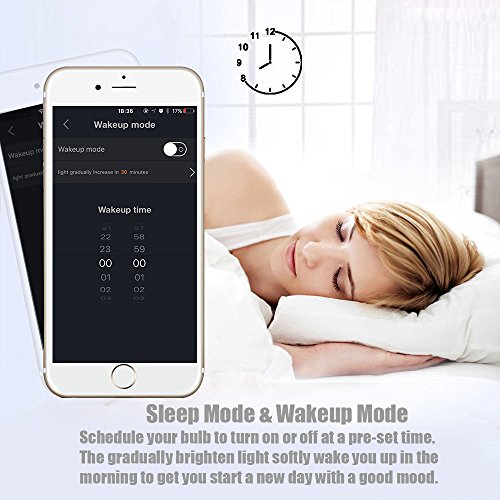 TIMER & SUNRISE & SUNSET - Schedule your bulb to turn on or off at specific time. Wake up in the morning to your favorite colors. Come home to a bright and well lit home. Use the "Sunrise" mode to have the bulb gradually brighten as you wake up and the Sunset mode to have the bulb gradually dimming when you sleep. During Vacation make it look like someone's home, even when you're not.