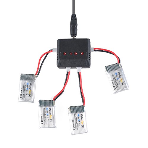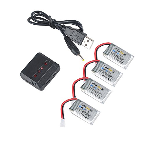 Studio : MakerFun Publisher : MakerFun Binding : Electronics Product Description 4pcs 3.7v 250mAh 25c Lipo Battery Parts with 1pcs 4 In 1 Battery Charger for Syma X4 X11 X11c and Walkera Mini CP/QR Ladybird UDI U816A U830 RC Quadcopter Drone Parts