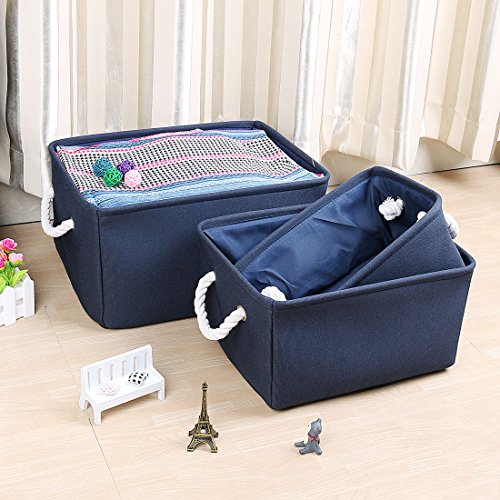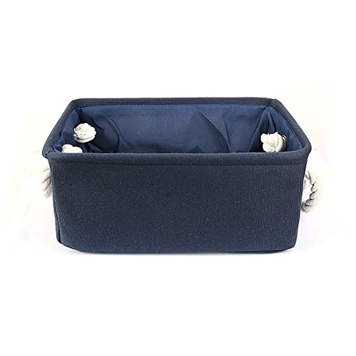 uxcell Fabric Storage Basket, Laundry Basket, Collapsible Organizer Bedroom Bin w Dual Handles for Office, Closet, Kitchen Toy Clothes (Dark Blue,S)