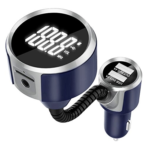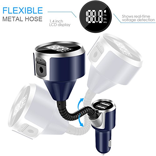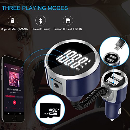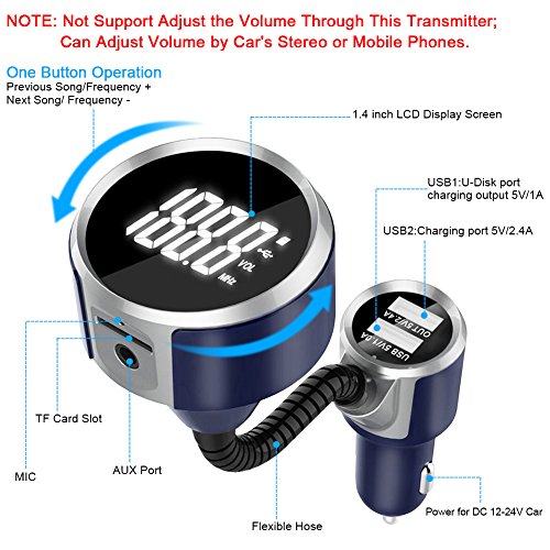 LUMAND Bluetooth FM Transmitter Radio Adapter Hands free Car Kit with 1.4 Inch Display and 5V 3.4A(1A+2.4A) Dual USB Car Charger Support TF Card USB Flash Drive