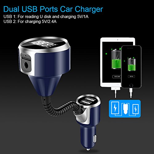 - DUAL USB CHARGING PORT - Support charging two devices simultaneously by the dual USB ports which output 3.4A total. The 5V/2.4A USB charging port provides fast charging speed; Another designed to charge and read U Disk.