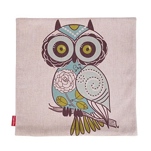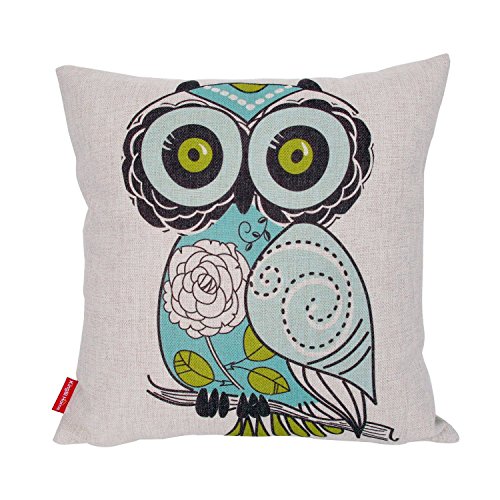 Kingla Home Cotton Linen Square Decorative Throw Pillow Covers 18 X 18 Inch Custom Pillow Cases Cushion Cover for Sofa Cute Cartoon Green Owl