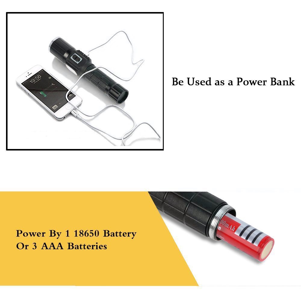 Come with USB charging cable, can be charged compatible with power bank, computer, wall charging etc. USB charging Port on the flashlight, do not need to take out the battery. do not worry about charge too long to cause discharge, it have short circuit protection. The gladiator flashlight can also be used as an emergency power bank, you can use the charging cable to connect your phone to recharge