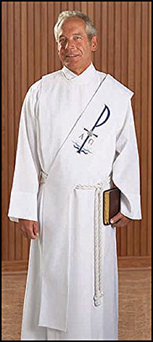 Studio : AT001 Publisher : AT001 Binding : Jewelry Product Description Embroidered with baptism symbols, this lined deacon stole is worn during the baptism ceremony. There is an attached side cord to keep the stole comfortably in place. 110" L. -- Polyester -- 110" L 0
