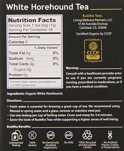 -. Title : Buddha Teas White Horehound Tea, 18 Count (Pack of 6)