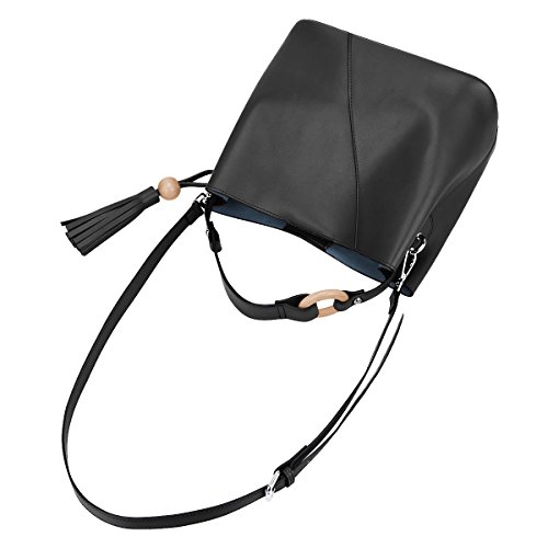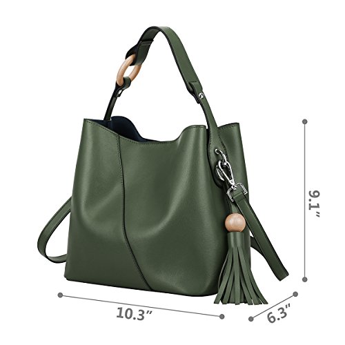 -. Feature : Dimensions(L*W*H): 10.3*6.3*9.1inch. It can fit an iPAD Air2. Shoulder drop: 17.5inch-21.5inch (adjustable long strap)/ 6.3inch (unadjustable short strap). Weight: 1.13lb. This is a SMALL crossbody & top-handle bag, please confirm the dimensions of the bag before your purchase. / Material: The bag is made of Genuine Split Cow Leather and durable silver tone hardware. It feels soft and looks charming, which is a perfect choice for enhancing your urban style. / Structure: One detachable pouch inside the bag, one zipper pocket and two open compartments in the pouch. Enough space for holding your phone, makeup, wallet, tissue etc. Equipped with two straps, one detachable long strap and one undetachable short strap. / Characteristics: Top metal magnetic buckle closure for extra security and shows your generous. Rivet protects the bottom. Tassel and wooden ring design for the short strap. Beautiful streamlined outside and the detail stitching is precise. / Versatile: You could use it as a Handbag, a Tote Bag, or a Shoulder Bag. Perfect for using in office, school, travel or any other daily occasions.