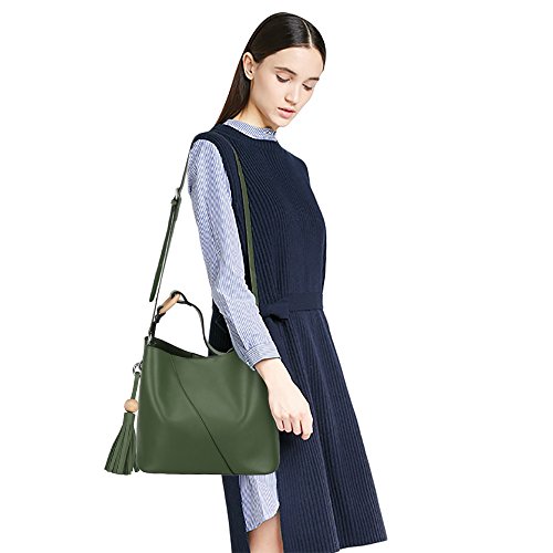 -. Title : S-ZONE Women's Small Genuine Leather Top-handle Bag Shoulder Bag Tassel Ladies Purse