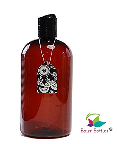 BROWN AMBER PLASTIC REFILLABLE BOTTLES - 16 OZ with Black HAND-PRESS FLIP DISC CAPS - ORGANIZE Soap, Shampoo, Lotion with a Clean Look - PET,...