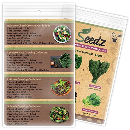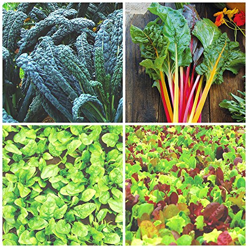 TOP-SELLING Certified Organic Seeds - Garden Greens Variety Pack - Kale, Lettuce, Spinach, Swiss Chard - Heirloom Seeds - Non GMO, Non Hybrid Vegetable Seeds - USA