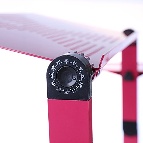 -. Feature : LIGHT WEIGHT ALUMINUM TRAY - Makes Carrying Easy and Holds Your Computer at Virtually Any Position or Angle / FULLY ADJUSTABLE LEGS - Rotate 360 Degrees and Lock in Place at Various Angles. Quickly Collapse The Stand to Make it Portable. / MORE COMFORTABLE - This standing laptop desk will provide you with full control and flexibility to place at your most comfortable position for typing angle and reducing neck and shoulder stress. No more neck pains due to hours of using your computers / Cooling Vented Tray: This laptop desk has enough vented tray for optimal airflow. Avoid overheating your laptops and use this mount to keep operating at the safest temperatures possible / MULTIPLE FUNCTIONS - This adjustable laptop desk can be used as a TV stand, dinner table, sound equipment, book holder, writing desk and tablet holder that meets all your different needs.