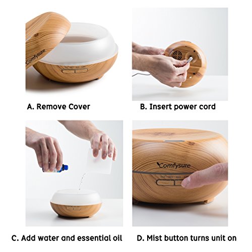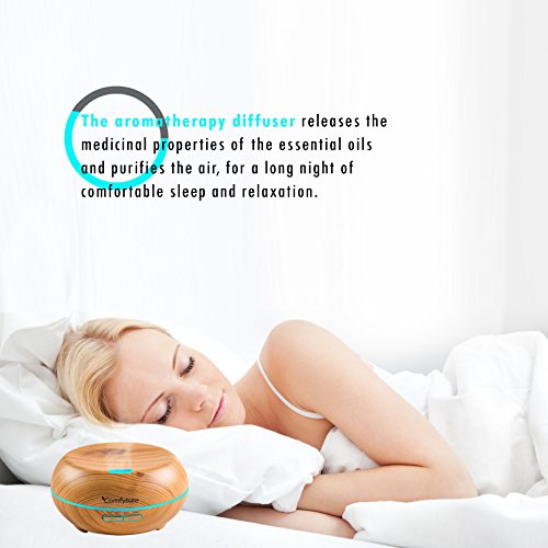 200ml Essential Oil Diffuser - Aromatherapy Ultrasonic Cool Mist Humidifier - Elegant Wood Design With LED Lights - Timers and Auto Shut Off - By ComfySure