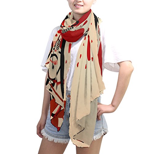 (ALAZA)/Accessories/Cold Weather Accessories/DIRECT FROM USA/ALAZA Love Valentine Bicycle Chiffon Silk Long Scarf Shawl Wrap