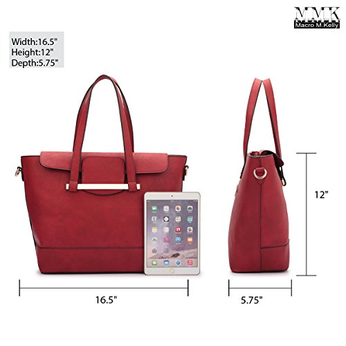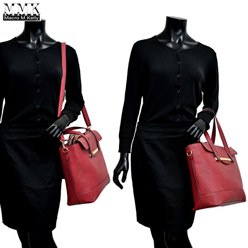 -. Feature : High quality Faux Leather Meterial with fabric lining by MMK BACKPACK BY MARCRO .M. KELLY giving both of these two bags an amazing durability for long lasting use / Perfect Combination Offer with 1 outer solid color classic style tote with a front flap designed with gold accent and 1 inside matching color Satchel decorated with special designed round gold accent top handle together! Each of these two bags can be carried out separately and reveal different fashion styles. Also combine these bags as one which will be extremely modern and unique. Combination of two different and matching color makes your new combination particular attractive. / Interior & Exterior: 2 Open Top Interior Cell Phone/Item Pockets and 1 zipped pocket inside Tote,1 Back Wall Zipper Pocket outside Tote provides you enough room for your cellphone and personal items storage. Each of them is with Top Zipper Closure which will definitly ensures the safety of your own properity and gives you easy and comfortable access at your fingertip. / The approx size of this bag is about 16.5"W x 12"H x 5.75"D(inches) which is big enough for your cellphones, laptop, ipad and even have enough room for all of them. That proper size makes both of them looks not huge or bloated at the sametime, ensure the multifunctionality.If you put lots of stuff in it, still no worry about breakdown cause we use HQ faux leather. / This combination comes with a End to End 42''(inches) adjustable and removable Shoulder Strap and 4'' Handle which fits any way you want to carry them . Unique design and matching color will absolutely match all outfits in your closet, having these combination will save your time from wondering which color of your cloth you should wear to match.