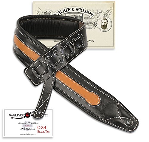 -. Brand : Walker & Williams -. Color : Black with Tan -. EAN : 0736024416205 -. Feature : Extra wide handmade padded leather guitar strap using all top quality AAA premium materials / Black Soft Top Grain Leather with Tan Leather Insert / Ultra Soft Glove Leather Back with Double Thick Padding / Contrasting Single Needle Top Stitching / Fully 3 1/4" wide and adjustable from 44"-54" -. Label : Walker & Williams -. Manufacturer : Walker & Williams -. Model : C-34-TN -. MPN : C-34-TN -. PackageQuantity : 1 -. PartNumber : C-34-TN -. ProductGroup : Musical Instruments -. ProductTypeName : INSTRUMENT_PARTS_AND_ACCESSORIES -. Publisher : Walker & Williams -. Size : Extra wide, Extra Long -. Studio : Walker & Williams -. Title : Walker & Williams C-34-TN Black and Tan Super Premium Top Grain Leather Padded Strap 3 1/4" Wide -. UPC : 736024416205