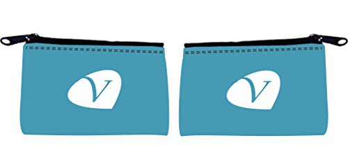 -. Title : Rikki Knight Letter V" Teal Blue Petal Leaves Design Scuba Foam Coin Purse
