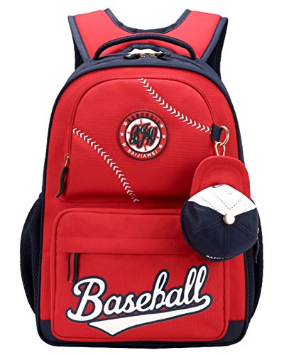 -. Title : Baseball School Bag Water Resistant Nylon Backpack Bookbag with Two Zipper Mini Cap for Grade 3-6 Student