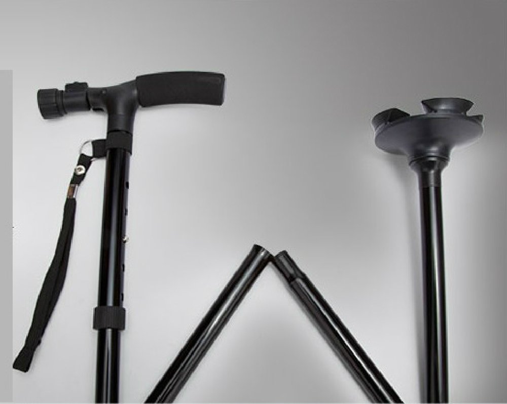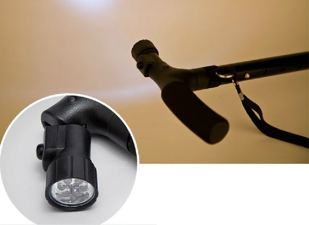 yasushoji folding multipoint cane never tilt head rotation autonomous rubber foot foot slip safety safe elderly with LED light 5 stages length expansion and retraction T type handle band with lightweight aluminum
