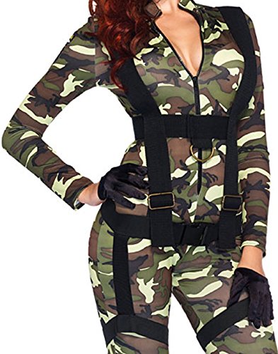 -. Title : Leg Avenue Pretty Paratrooper Zipper Front Camo Jumpsuit and Body Harness