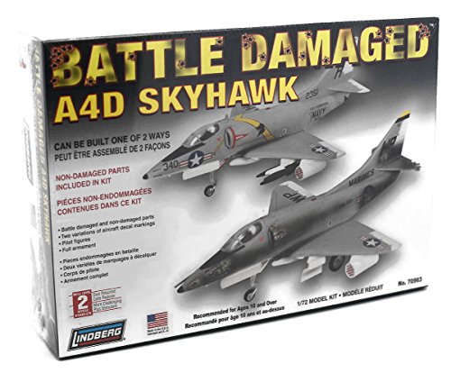 Studio : Lindberg Publisher : Lindberg Binding : Toy Product Description BATTLE DAMAGED A4D Skyhawk Lindberg Model Aircraft Kit 1:72 Scale Model #90963 Can be built two ways. Battle Damaged and non- Damaged Parts Included. Two variations of decal markings. Pilot figures and full armament. Ages 10 Skill Level 2 0