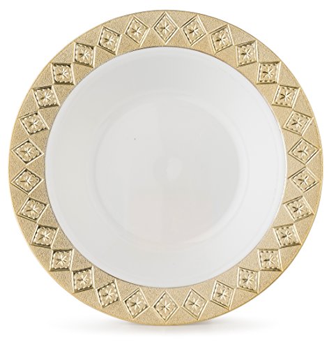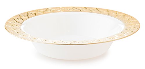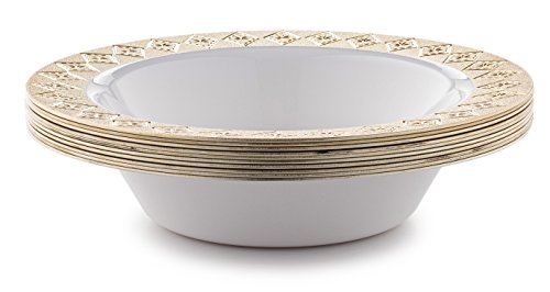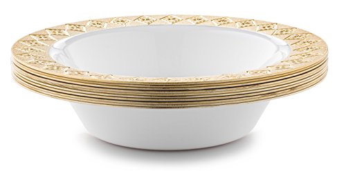 - ELEGANT - Providing the look of china at a fraction of the cost, this Vintage white bowl with gold border design gives you the appearance you want with the convenience you need! It's disposable to eliminate time wasted washing dishes, and has none of the related storage and transport costs of real china. Plus, the attractive appearance makes it ideal for elegant dining environments where real china simply isn't feasible or desired!