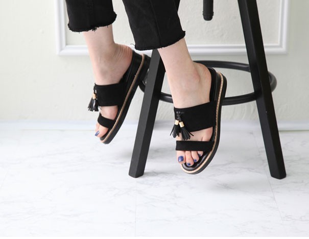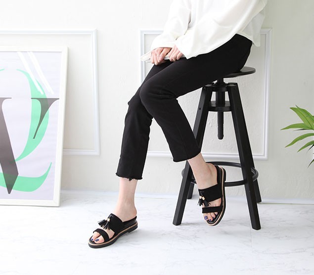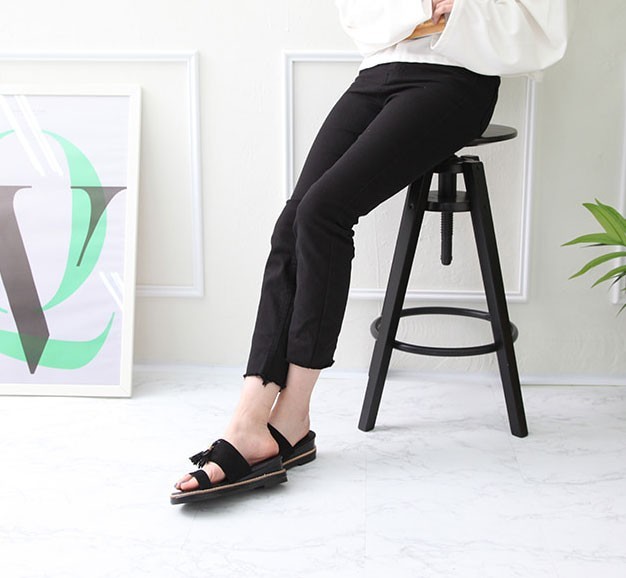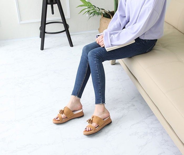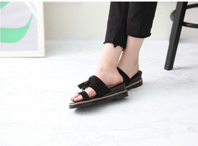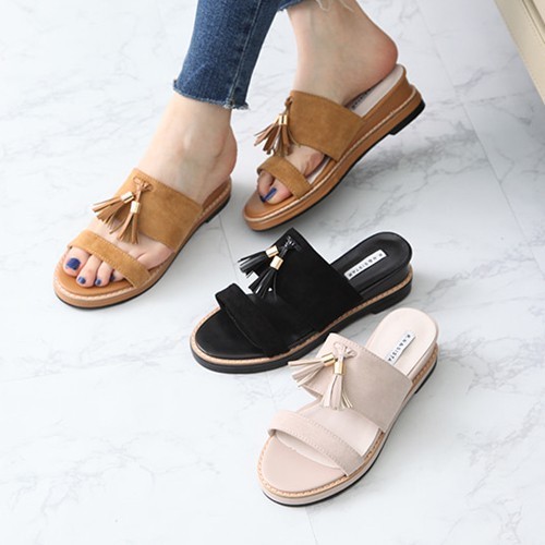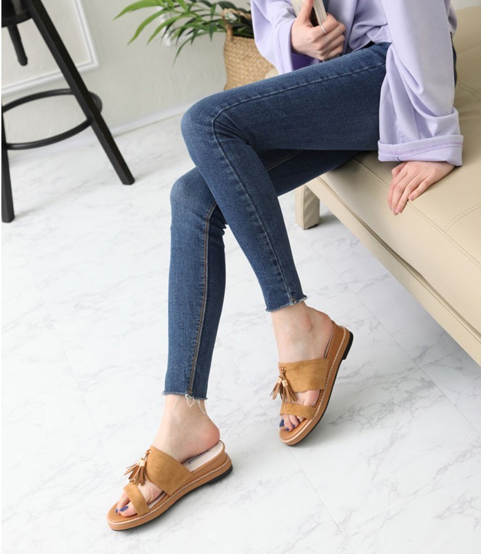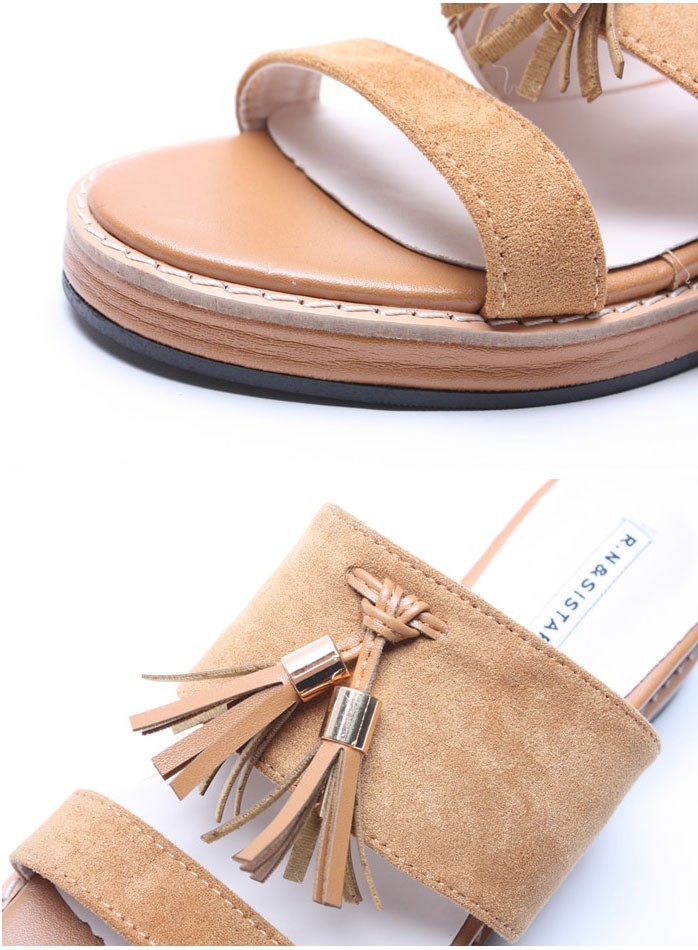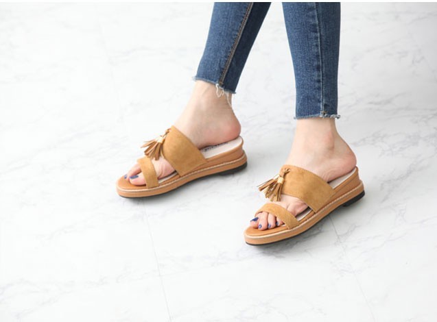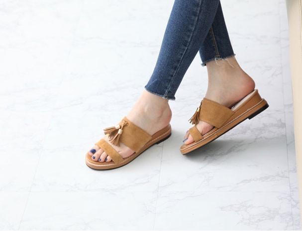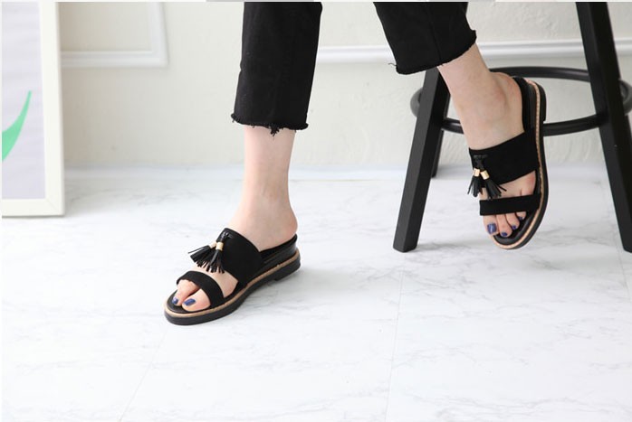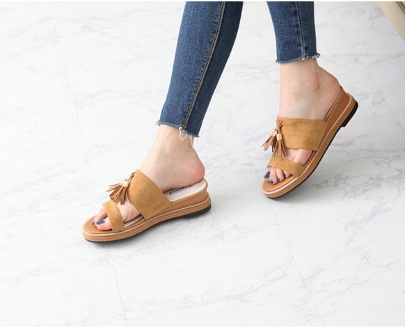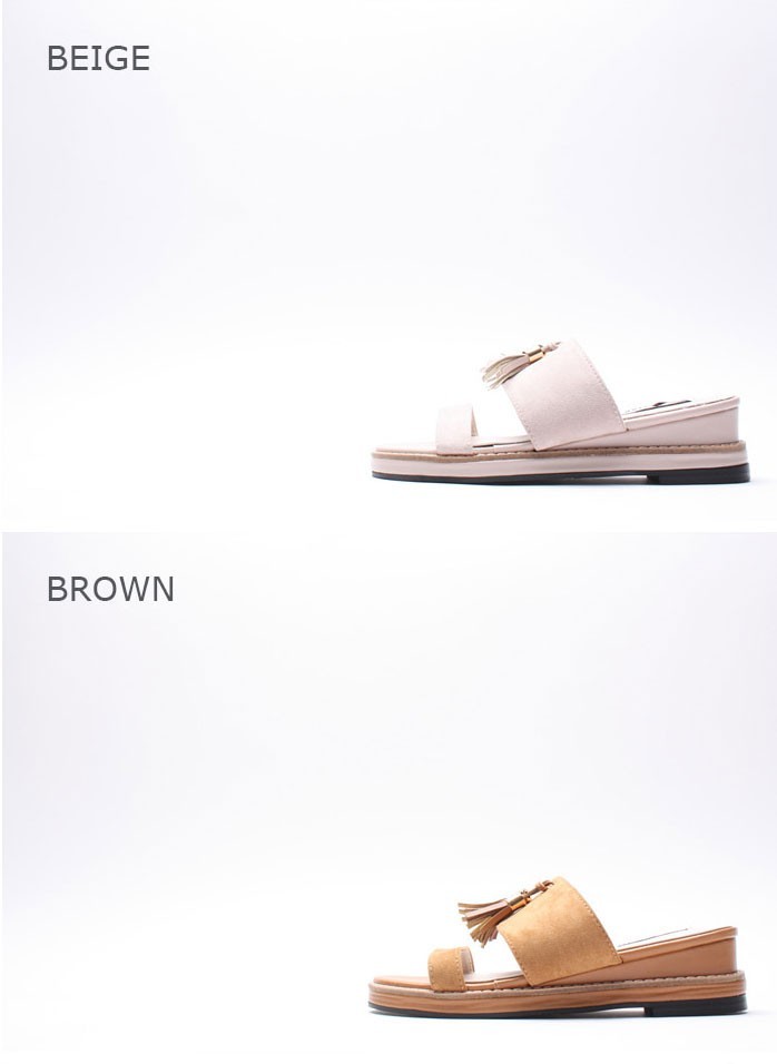 商品名:サンダル レディース ペタンコ フラットヒール スエード調 タッセル 2018 春 ファッション 靴 婦人靴