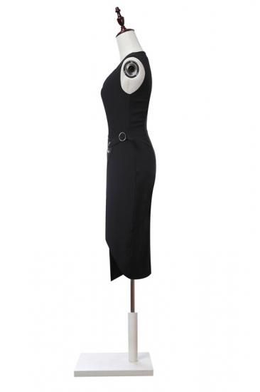 大人セクシーな、ノースリーブひざ丈ブラックタイトドレス。