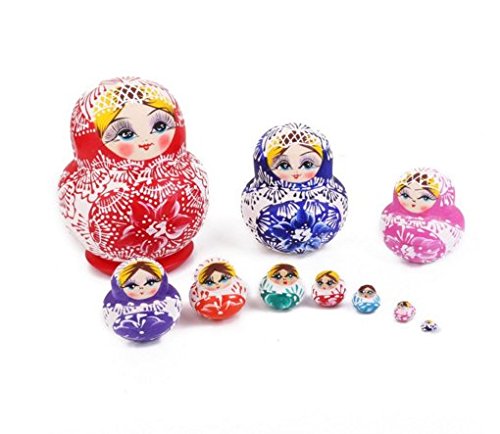 -. Title : ANKKO 10pcs Beautiful Traditional Wooden Russian Dolls Matryoshka Nesting Dolls