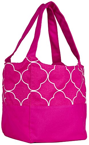 -. Feature : Snap Shut Enclosure / Large Internal Zippered Pocket / External Zippered Pocket / Polka Dot Gingham Lining / 11-Inch Handle Drop