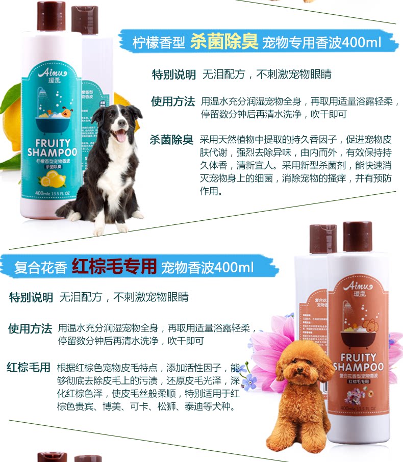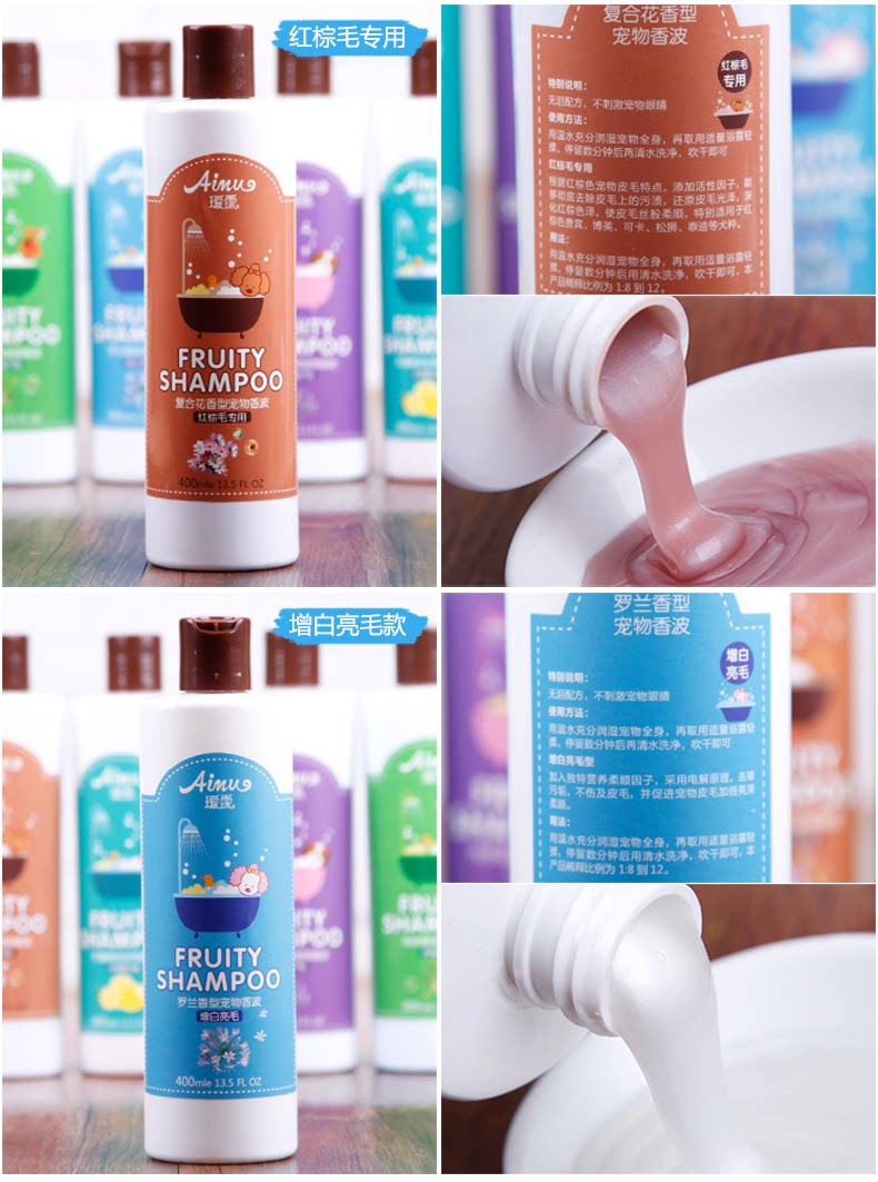 Flavor: composite flowers, red brown special Specifications: 400ml Special note: no tears formula, does not stimulate the eyes of pets Reddish brown reddish brown fur of the pets: according to the special features, add active factor, can thoroughly remove the stains on the hair, reducing fur luster, reddish brown color to deepen, silky fur, especially suitable for the red brown poodle, Pomeranian, Cocker, Chow Tactic dog etc. color2
