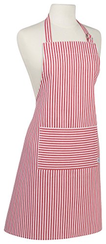 Now Designs Basic Cotton Kitchen Chef's Apron, Narrow Stripe Red Print