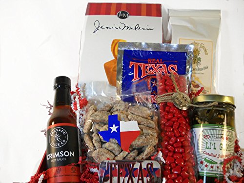 -. Feature : Texas Gulf Coast themed Gift Basket filled with Texas made foods / medium P.R.Iced gift basket with Texas made foods / Texas styled Gift Basket / Gourmet Food Gift Basket