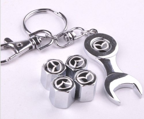 Wrench Keychain Chrome Tire Valve Stem Caps for Mazda