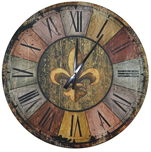 -. Title : Lulu Decor, Fleur De Lis Wood Wall Clock, Diameter 23.50", Perfect for Housewarming Gift.